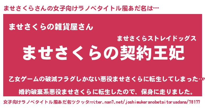 | 胡散臭い通販商品みたいなあだ名 | 『来世でも幸せになれる健康食品…その名も「ませさくら」』 |