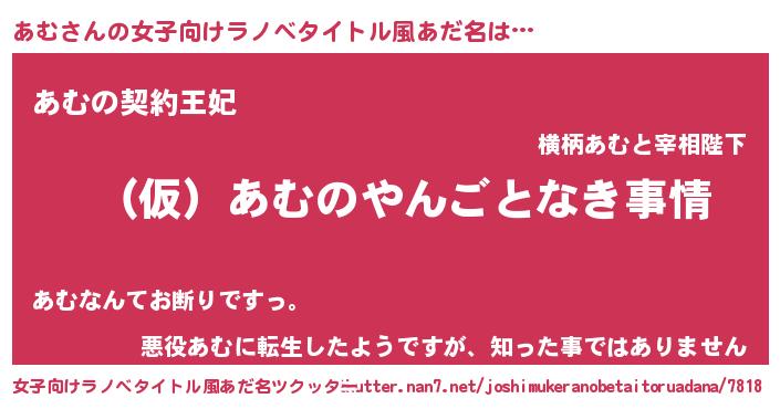 | 男性向けラノベタイトル風あだ名 | 『あむの憂鬱』『魔法科高校のあむ』 |