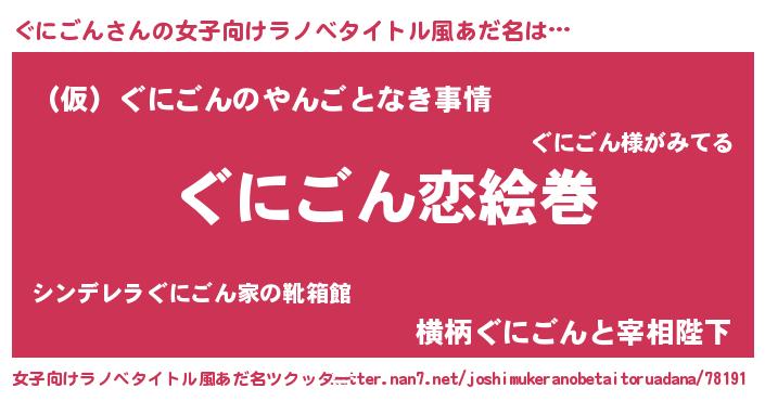 | 男性向けラノベタイトル風あだ名 | 『ノーゲーム・ノーグニゴン』 |