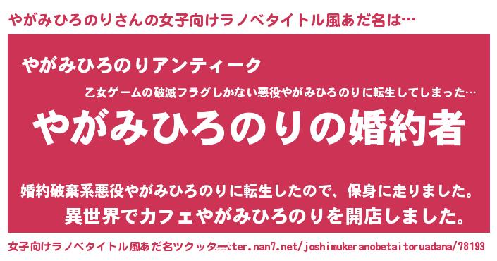 | ファンタジー風あだ名 | 『エターナルヤガミヒロノリー』 |