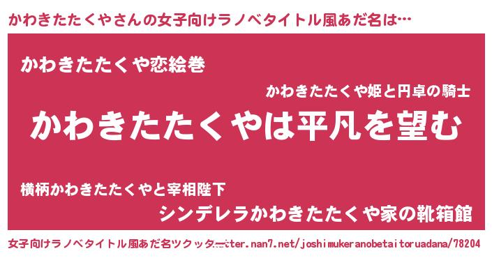 | ポケモン風あだ名 | 『ヒカワキタタクヤ』『カックウザ』 |
