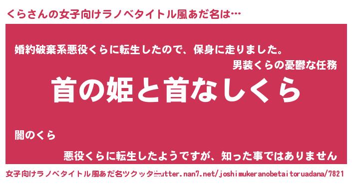 | 男性向けラノベタイトル風あだ名 | 『はたらくくらさま!』『クラスレイヤー』 |
