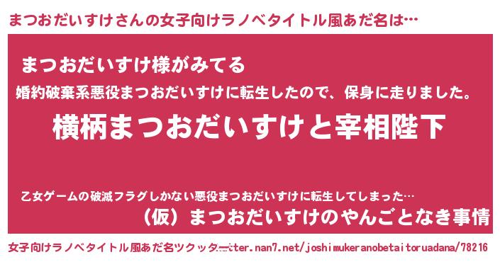 | 男性向けラノベタイトル風あだ名 | 『まつおだいすけに滅ぼされるだけの簡単なお仕事です』 |