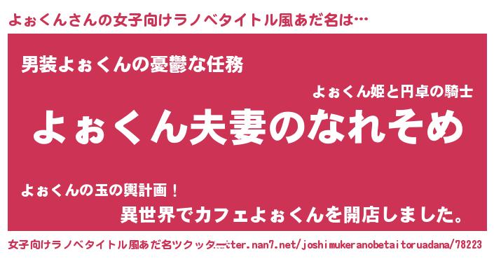 | 男性向けラノベタイトル風あだ名 | 『おまえをオタクにしてやるから、俺をよぉくんにしてくれ! 』 |