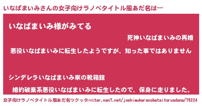 | 意味不明あだ名 | 『住所不定無職いなばまいみ(91歳)』 |
