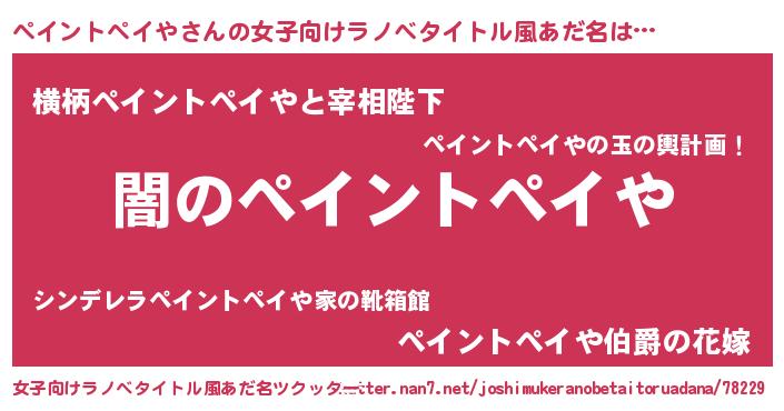 | 恥ずかしいあだ名 | 『ペイントペイヤデラックス』『ペイちん』 |