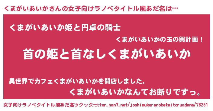 | 男性向けラノベタイトル風あだ名 | 『はたらくくまがいあいかさま!』 |