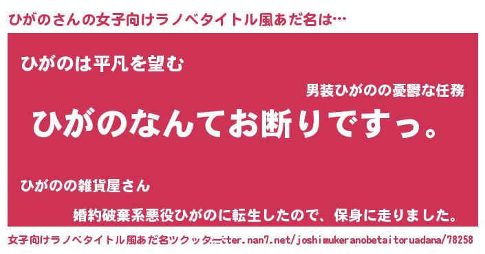 | 男性向けラノベタイトル風あだ名 | 『魔法科高校のひがの』 |