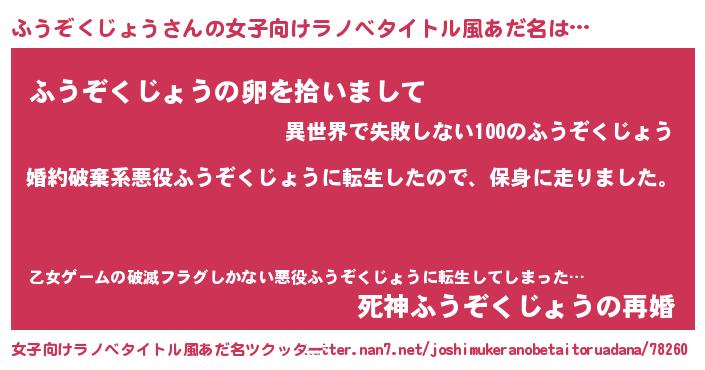 | 男性向けラノベタイトル風あだ名 | 『フウゾクジョウスレイヤー』 |