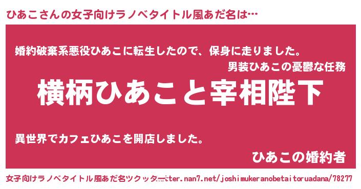 | 意味不明あだ名 | 『ニラ科ひあこ属』『ひあこフォーエバー』 |
