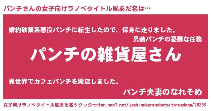 | 男性向けラノベタイトル風あだ名 | 『やはりパンチの青春ラブコメはまちがっている 』 |