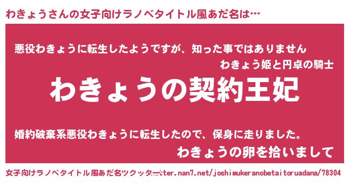 | 男性向けラノベタイトル風あだ名 | 『誰もが恐れるあのわきょうが、ぼくの専属メイドになるようです。』 |
