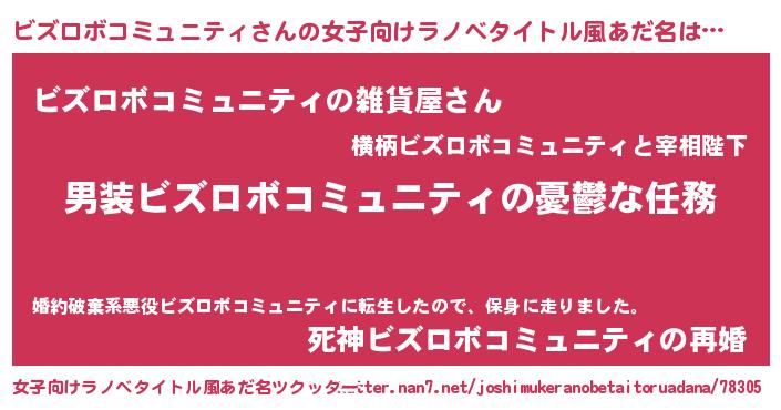 | 胡散臭い通販商品みたいなあだ名 | 『運命の人と巡り会える高級そうな皿…その名も「ビズロボコミュニティ」』 |