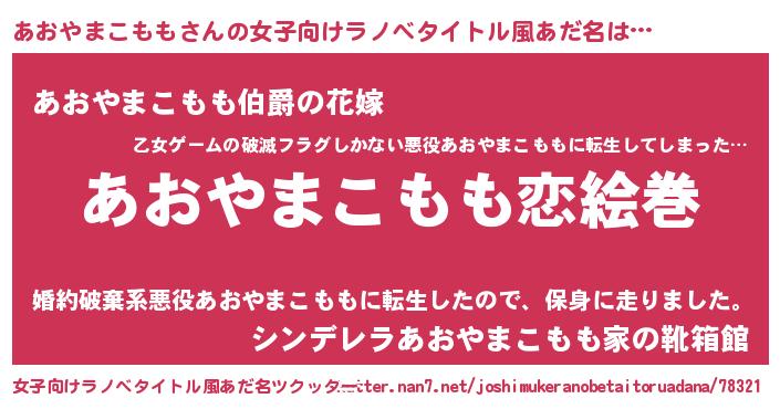 | 男性向けラノベタイトル風あだ名 | 『ノーゲーム・ノーアオヤマコモモ』 |