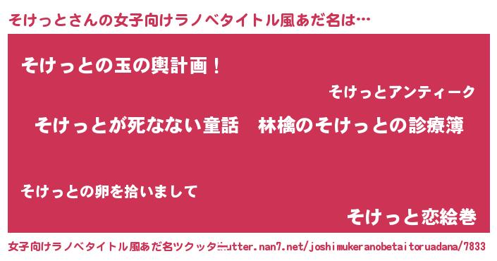 | 意味不明あだ名 | 『住所不定無職そけっと(62歳)』 |