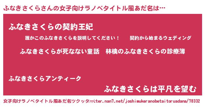 | 男性向けラノベタイトル風あだ名 | 『魔弾の王とふなきさくら』 |