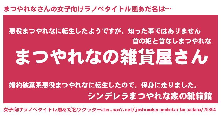 | 男性向けラノベタイトル風あだ名 | 『やはりまつやれなの青春ラブコメはまちがっている 』 |