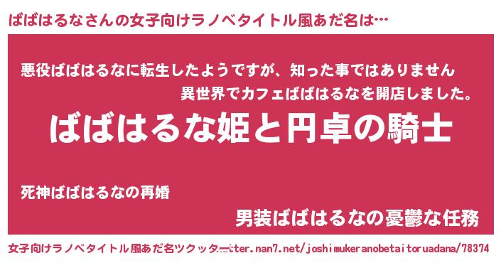 | 男性向けラノベタイトル風あだ名 | 『ババハルナアートオンライン』 |