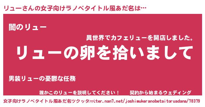 | 男性向けラノベタイトル風あだ名 | 『ダンジョンにリューを求めるのは間違っているだろうか』 |