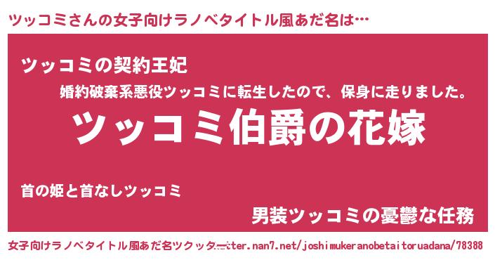 | 男性向けラノベタイトル風あだ名 | 『うちの娘の為ならば、俺はもしかしたらツッコミも倒せるかもしれない。』 |