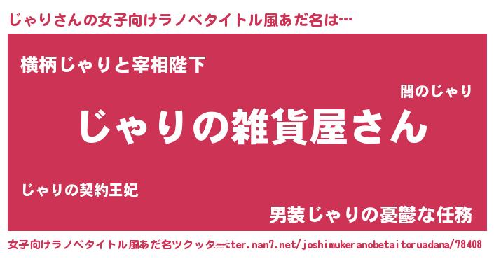 | 意味不明あだ名 | 『じゃりフォーエバー』『自称じゃり』 |