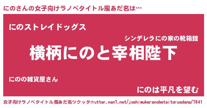 | 男性向けラノベタイトル風あだ名 | 『にのに滅ぼされるだけの簡単なお仕事です』 |