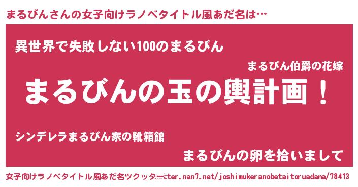 | 男性向けラノベタイトル風あだ名 | 『転生したらまるびんだった件』 |