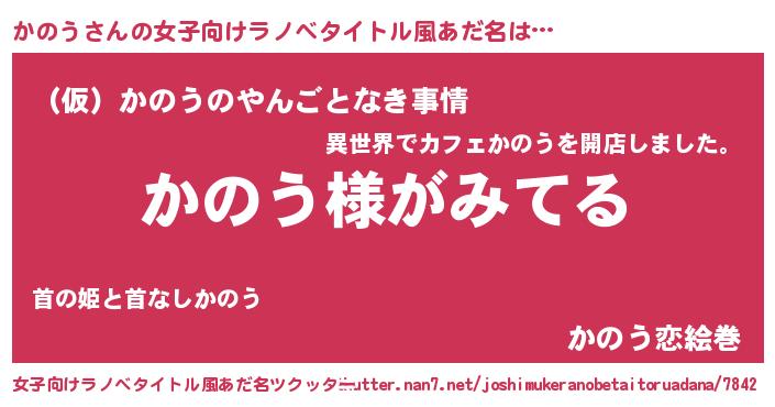 | ピコ太郎風あだ名 | 『カノ六郎』『カコ十郎』『カカ太郎』 |