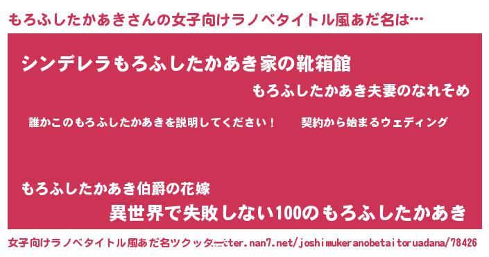 | 男性向けラノベタイトル風あだ名 | 『モロフシタカアキアートオンライン』 |