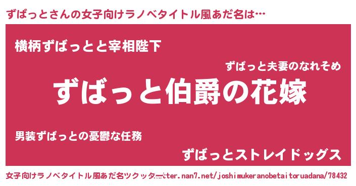 | 意味不明あだ名 | 『ずばっとフォーエバー』『自称ずばっと』 |