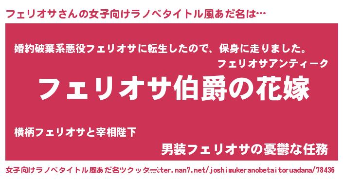 | 男性向けラノベタイトル風あだ名 | 『やはりフェリオサの青春ラブコメはまちがっている 』 |
