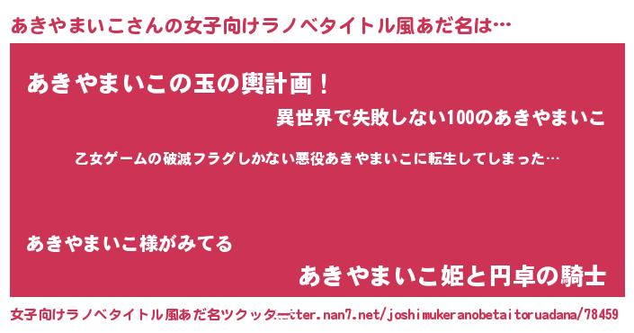 | 男性向けラノベタイトル風あだ名 | 『この素晴らしい世界にあきやまいこを!』 |