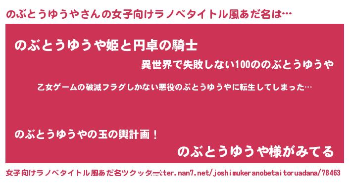 | 男性向けラノベタイトル風あだ名 | 『この素晴らしい世界にのぶとうゆうやを!』 |