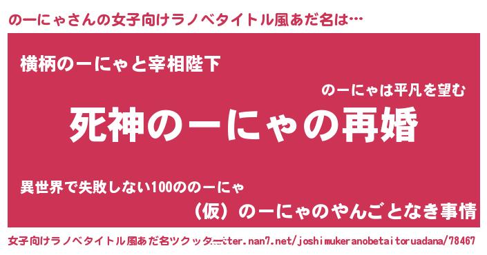 | 男性向けラノベタイトル風あだ名 | 『ノーゲーム・ノーノーニャ』 |