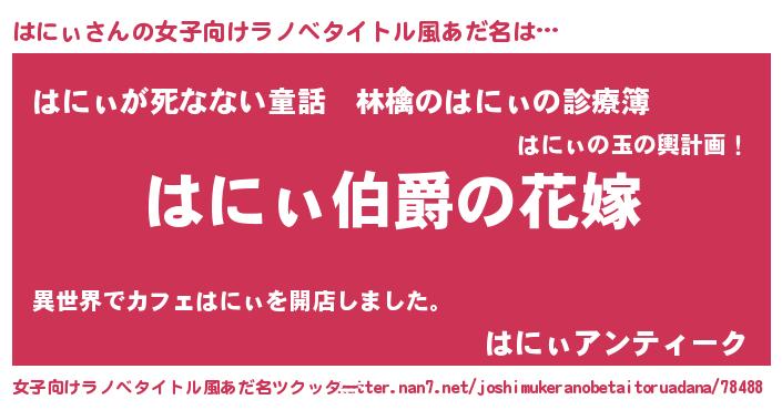 | 男性向けラノベタイトル風あだ名 | 『やはりはにぃの青春ラブコメはまちがっている 』 |