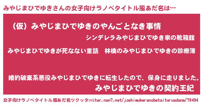 | 意味不明あだ名 | 『住所不定無職みやじまひでゆき(93歳)』 |