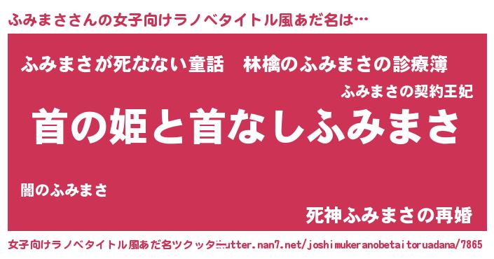| 男性向けラノベタイトル風あだ名 | 『はたらくふみまささま!』 |