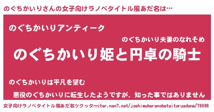 | ファンタジー風あだ名 | 『ノグフェル』『ゼノグトゥ』 |