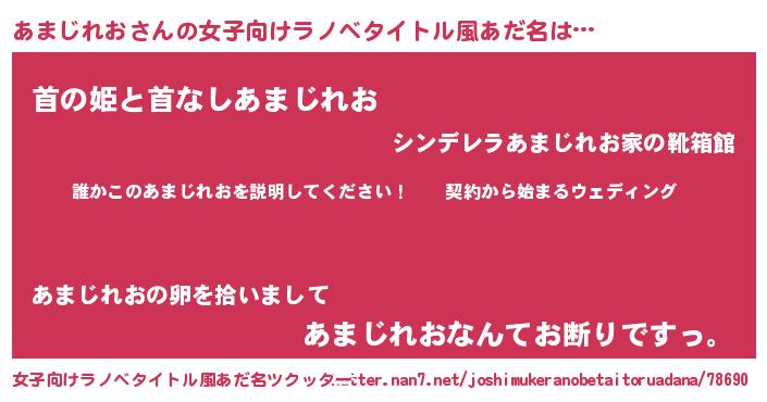 | 男性向けラノベタイトル風あだ名 | 『アマジレオアートオンライン』 |