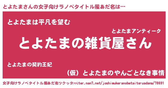 | 男性向けラノベタイトル風あだ名 | 『やはりとよたまの青春ラブコメはまちがっている 』 |