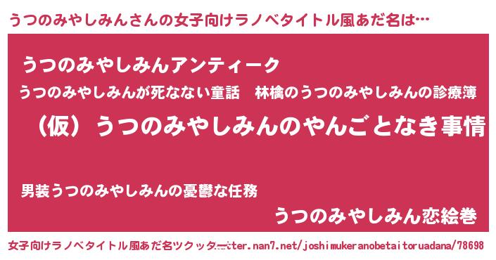 | 胡散臭い通販商品みたいなあだ名 | 『必ず成功するブレスレット…その名も「うつのみやしみん」』 |