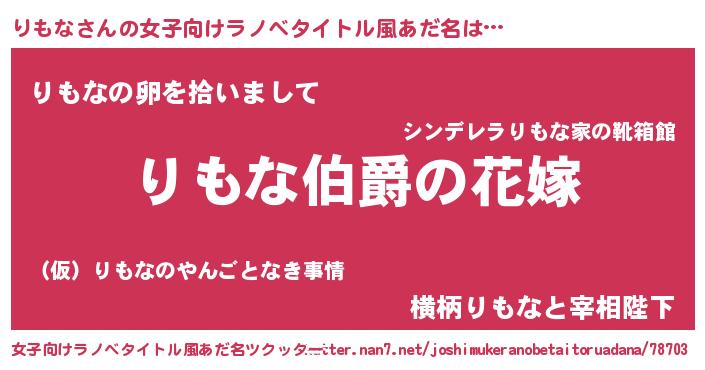 | 肩書あだ名 | 『りもな国家主席』『りもなリーダー』 |