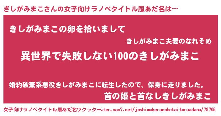 | 男性向けラノベタイトル風あだ名 | 『きしがみまこという概念が存在しない退屈な世界 』 |