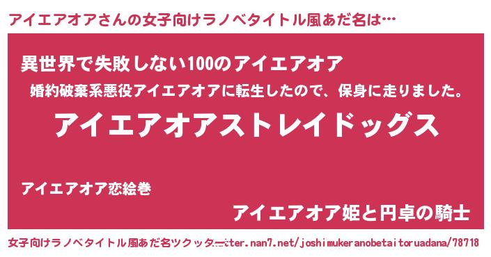 | 男性向けラノベタイトル風あだ名 | 『Re:アイエアオアから始める異世界生活』 |
