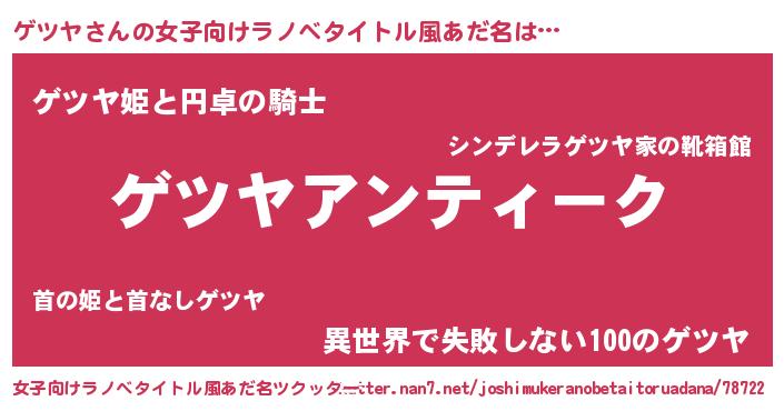 ヘコむあだ名 | 『ゲツにー』『ゲツヤ(苦笑)』 |