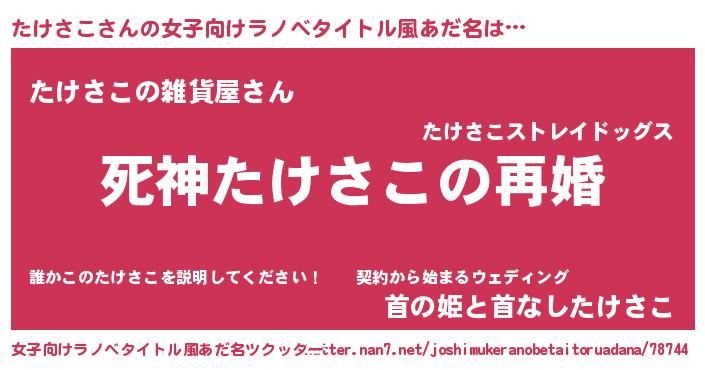 | 男性向けラノベタイトル風あだ名 | 『ノーゲーム・ノータケサコ』 |