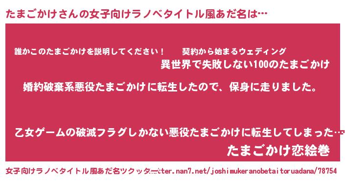 | 胡散臭い通販商品みたいなあだ名 | 『必ず成功する霊験あらたかなお札…その名も「たまごかけ」』 |