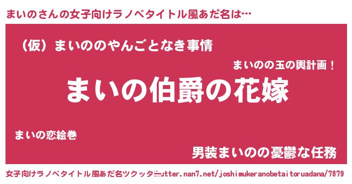 | 意味不明あだ名 | 『まいのフォーエバー』『ペロリンまいの』 |