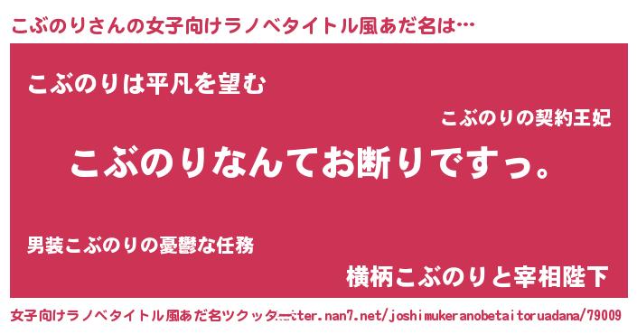 | 意味不明あだ名 | 『自称こぶのり』『永久保存こぶのり』 |
