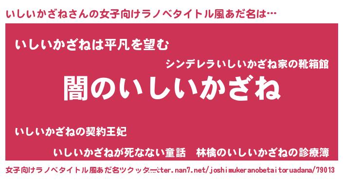 | 男性向けラノベタイトル風あだ名 | 『Re:いしいかざねから始める異世界生活』 |